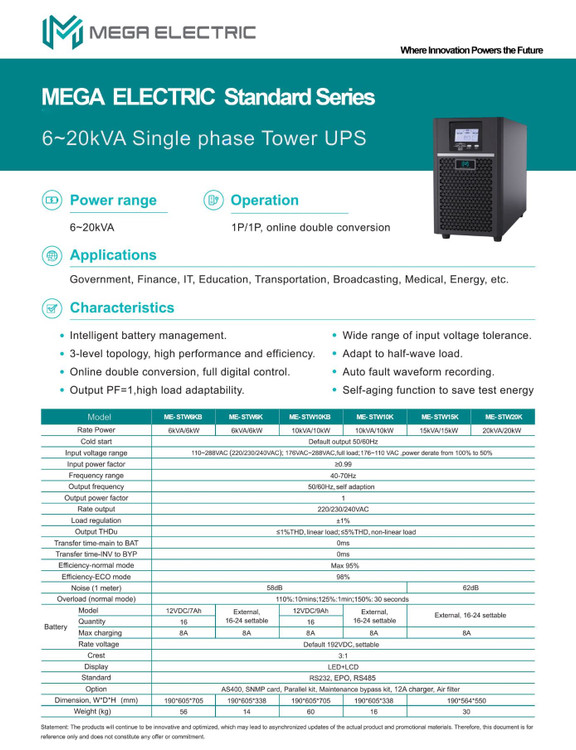 یو پی اسهای ME-STW10KB و ME-STWR10L از محصولات پیشرفته برند MEGA Electric محسوب میشوند که با تمرکز بر پایداری توان، بهرهوری بالا و طراحی ماژولار توسعه یافتهاند.