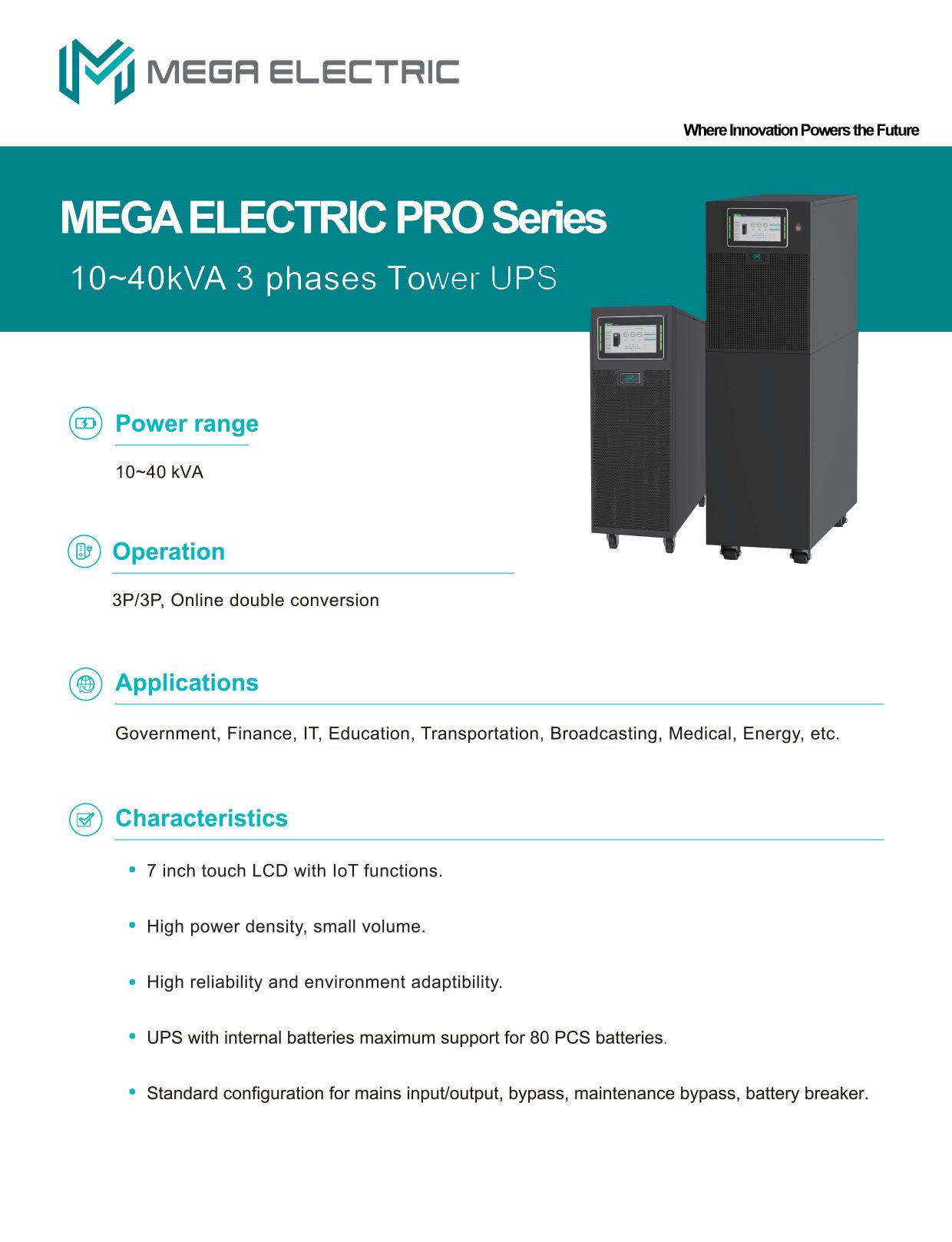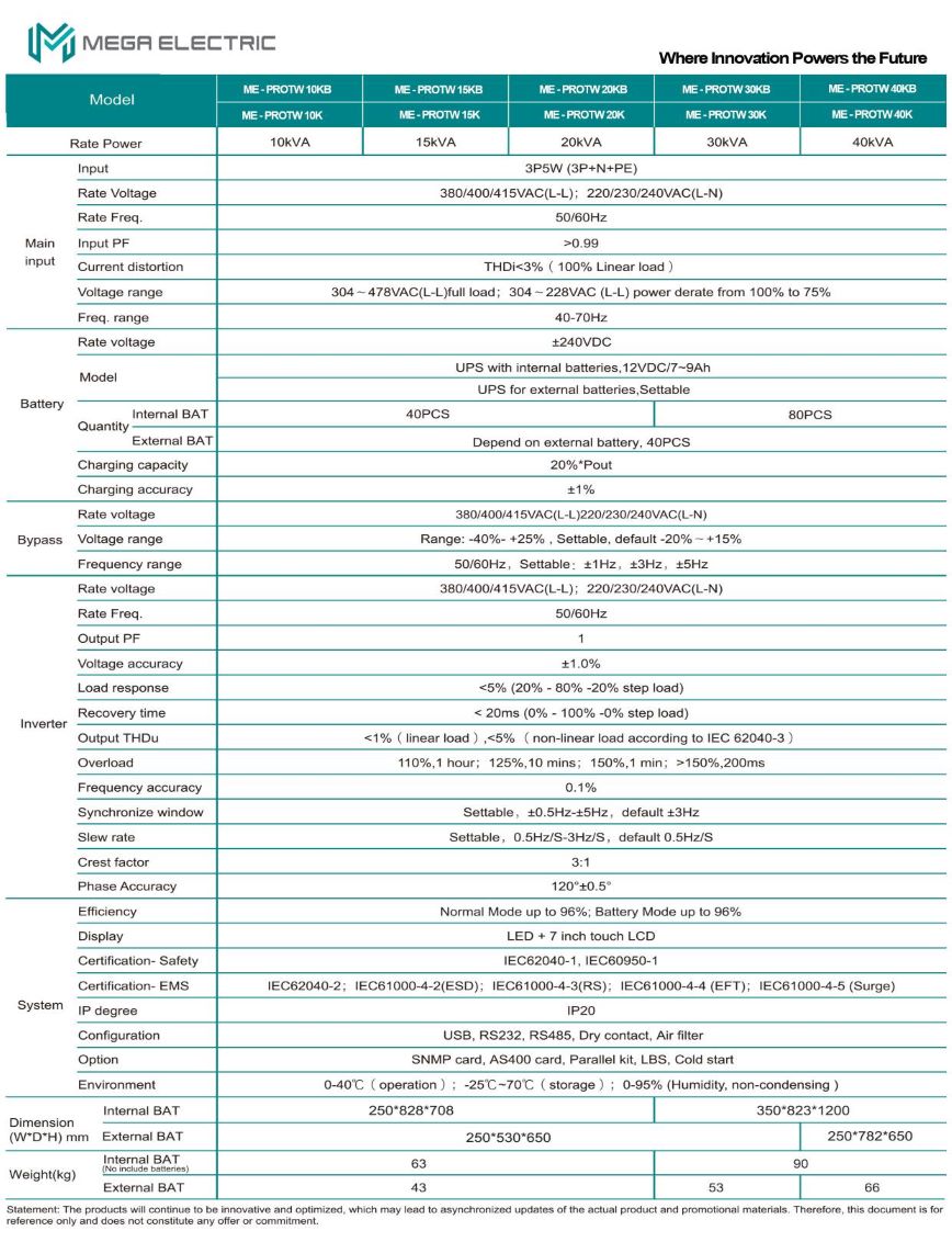 MEGA Electric Tower Pro Series 40KVA – 3 Phase High Frequency Online UPS